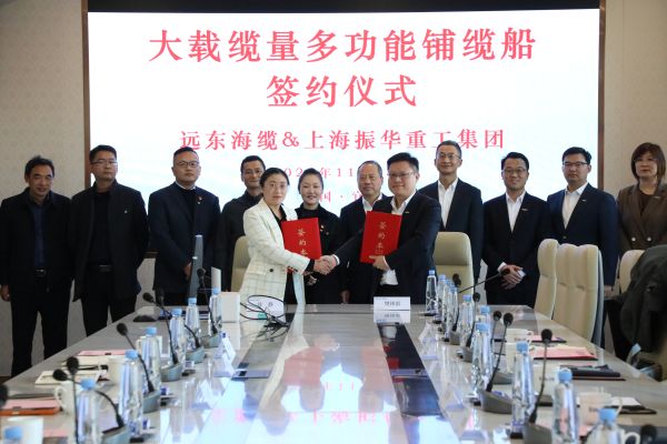 2025年11月18日,上海振華重工(集團(tuán))股份有限公司黨委常委、副總裁張健率隊來訪遠(yuǎn)東。遠(yuǎn)東控股集團(tuán)創(chuàng)始人、董事局主席蔣錫培,遠(yuǎn)東控股集團(tuán)黨委副書記、董事、電纜產(chǎn)業(yè)首席執(zhí)行官陳靜等領(lǐng)導(dǎo)熱情接待,雙方圍繞深遠(yuǎn)海開發(fā)與國際海工市場布局展開深度交流,并在江蘇宜興舉行大載纜量多功能鋪纜船EPC項目簽約儀式,標(biāo)志著兩大企業(yè)在海工裝備與能源配套領(lǐng)域的戰(zhàn)略合作邁入實質(zhì)性落地階段。遠(yuǎn)東控股集團(tuán)黨委委員、遠(yuǎn)東海纜總經(jīng)理徐靜代表遠(yuǎn)東簽約。